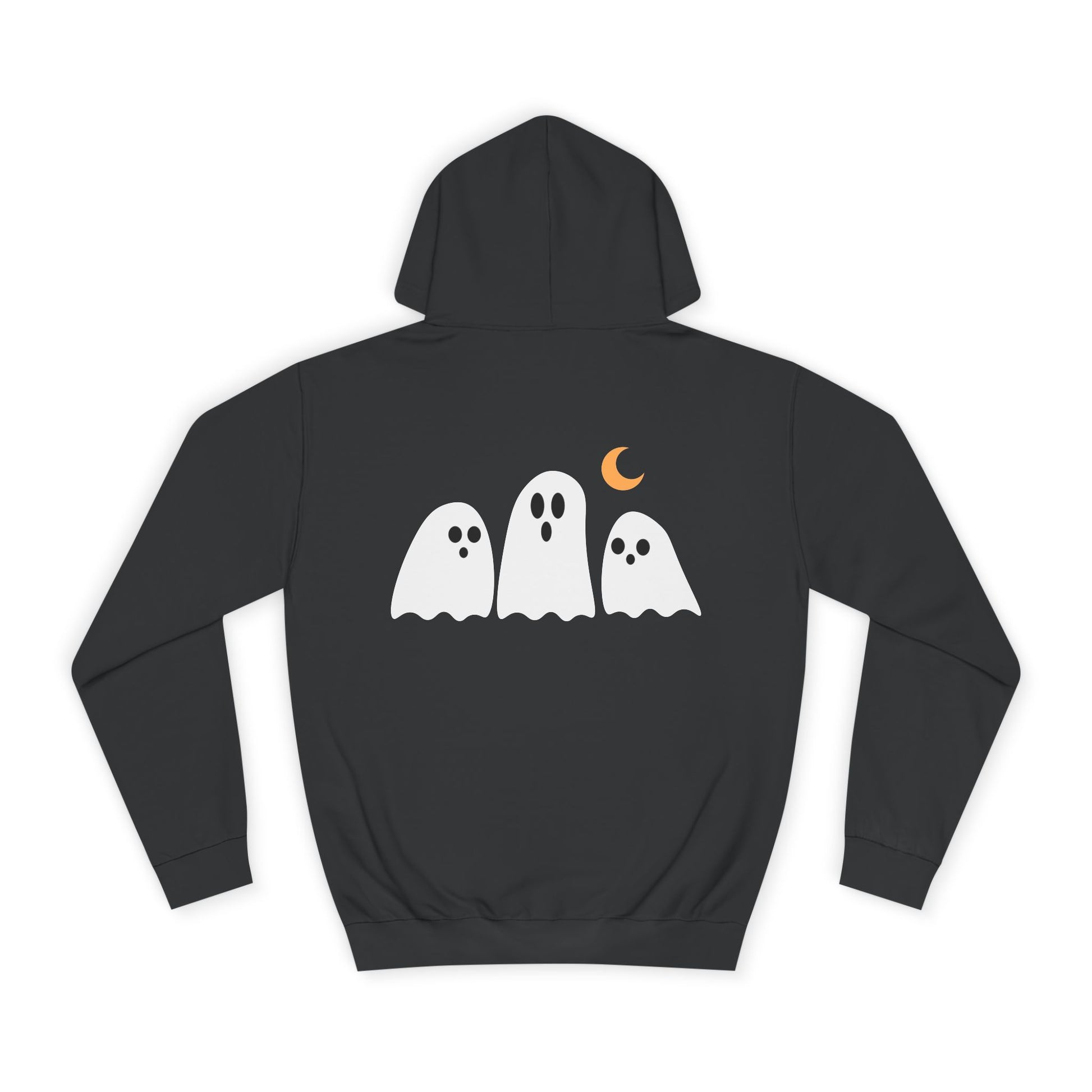 Spooky Season Unisex College Hoodie, Halloween Sweatshirt, Ghost Print Hoodie, Cozy Fall Apparel, Casual College Wear